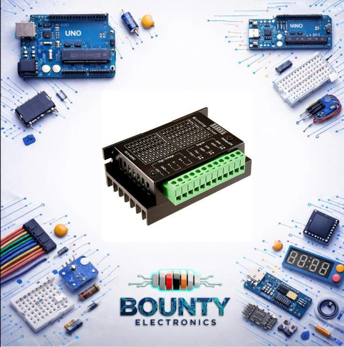 يعتبر TB6600 مشغل محركات (Driver) احترافي، وليس محركاً بحد ذاته، ويأتي بإطار معدني (هيكل ألمنيوم) يعمل كمشتت للحرارة لحماية الدائرة الداخلية أثناء التشغيل المستمر. يُستخدم هذا المشغل للتحكم في محركات الخطوة (Stepper Motors) ثنائية الطور مثل NEMA 17 و NEMA 23 و NEMA 34