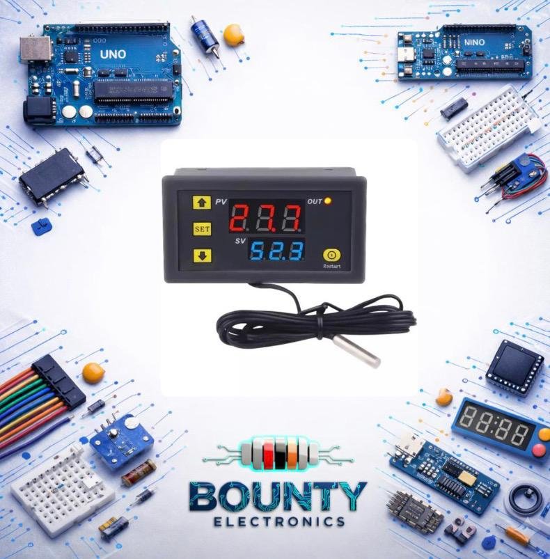وحدة تحكم درجة حرارة LED رقمية * W3230 – ترموستات قابل للبرمجة مع مسارات، توصيل كهربائي 5 فولت / 12 فولت / 24 فولت، تحكم دقيق في درجة الحرارة لنظامي التدفئة والتهوية، وحدة تحكم درجة الحرارة | شاشة LED | ترموستات قابل للبرمجة