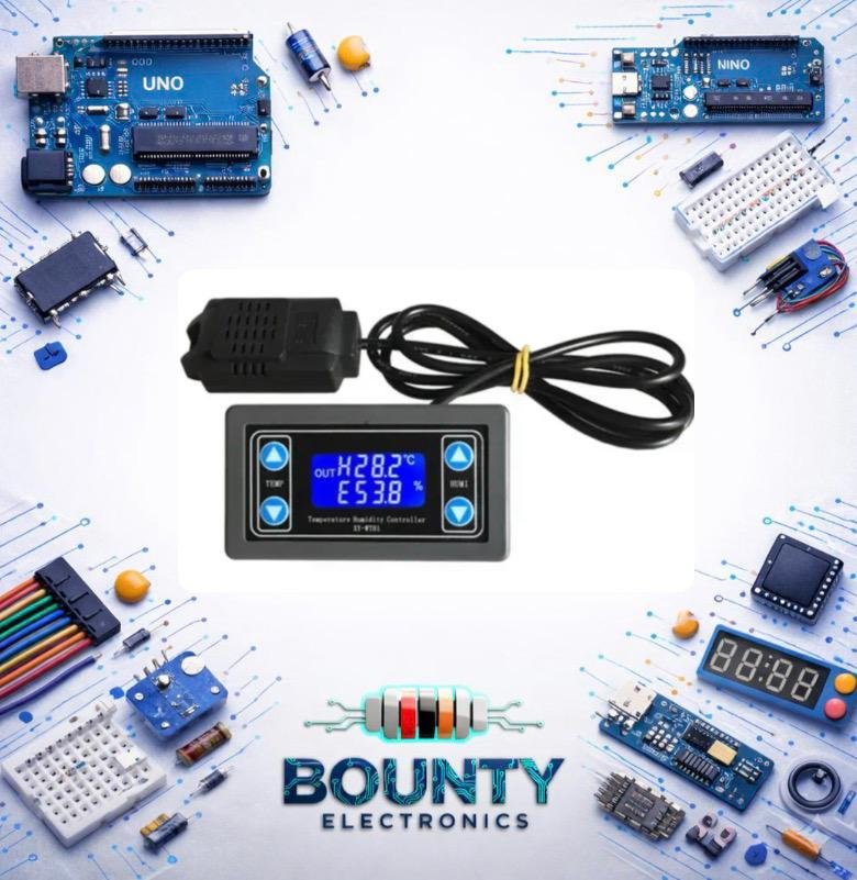 وحدة XY-WTH1 هي جهاز تحكم رقمي دقيق في درجة الحرارة والرطوبة يمتلك شاشة LED ومخرجين ريليه (Relay) مزدوجين، قادر على العمل في نطاق واسع (-20°C إلى 60°C، 0-100% رطوبة) مع دقة عالية (0.1°C، 0.1% RH) للتحكم في أنظمة التسخين، التبريد، الترطيب، والتجفيف تلقائيًا، ومناسب للمشاريع الإلكترونية والزراعة والحاضنات