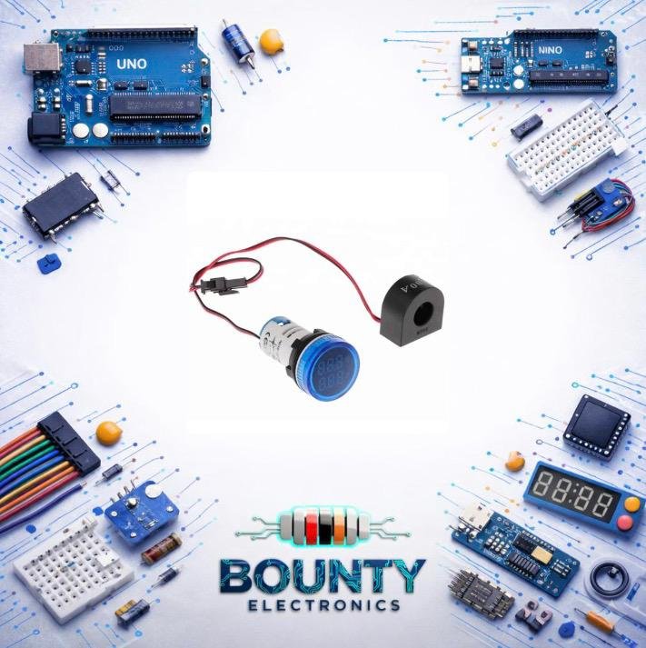وحدة فولتميتر رقمية صغيرة (مؤشر ضوئي) بإضاءة LED زرقاء، مصممة للتركيب على اللوحات (قطر 22 ملم)، تقيس جهد التيار المتردد (AC) في نطاق 60-500 فولت. مثالية كإشارة تحذير أو مراقبة في لوحات الكهرباء والآلات. تتميز بدقة عالية وسهولة في التركيب والاستخدام.