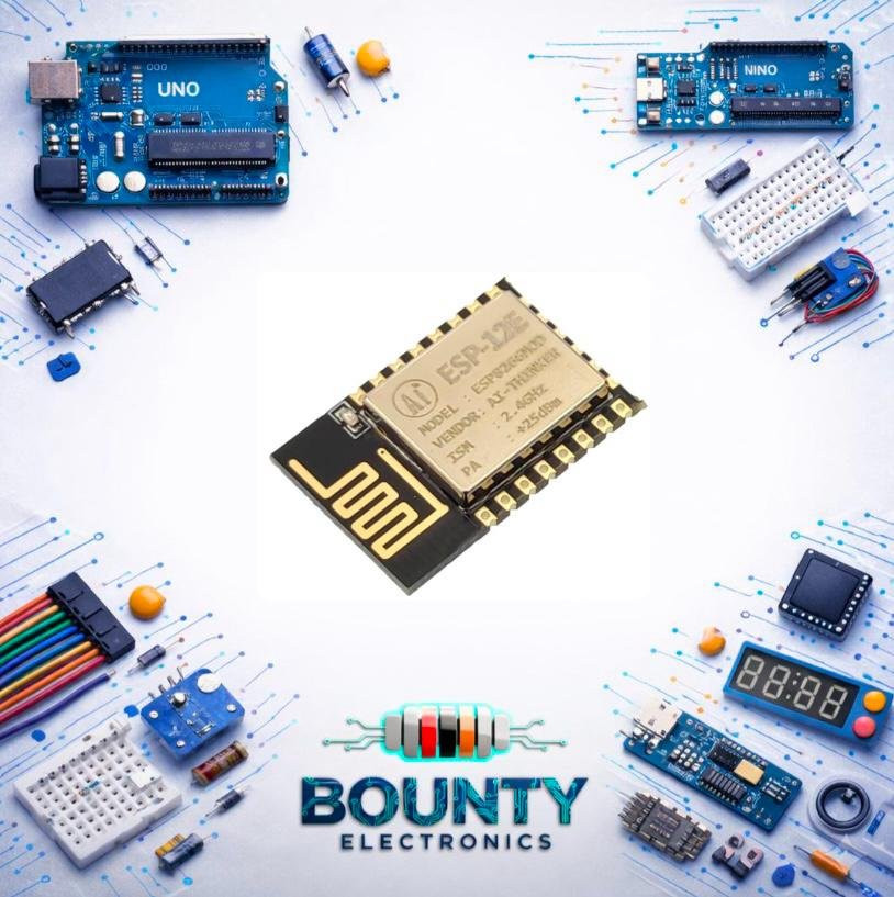 وحدة ESP-12F من تصنيع شركة Ai-Thinker هي وحدة واي فاي مدمجة ومنخفضة التكلفة تعتمد على شريحة ESP8266، وتتميز بكونها حزمة صغيرة (SMD22) تحتوي على هوائي PCB مدمج، تدعم بروتوكولات الواي فاي القياسية (802.11 b/g/n)، وتوفر مكدس TCP/IP كامل، وتُستخدم لإضافة إمكانيات الشبكة للأجهزة الإلكترونية، وتدعم البرمجة عبر منصات مثل الأردوينو والميكرو بايثون، مثالية لمشاريع إنترنت الأشياء (IoT)