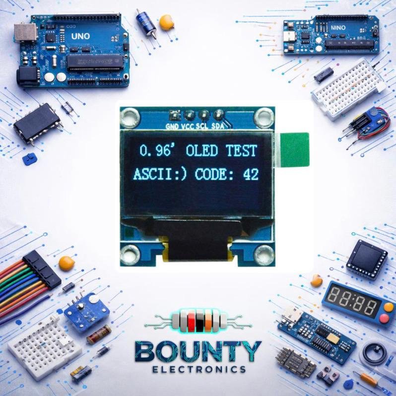 وحدة OLED زرقاء مقاس 0.96 بوصة هي شاشة صغيرة ذاتية الإضاءة، تتميز بتباين عالٍ واستهلاك منخفض للطاقة، وتستخدم عادة في مشاريع الإلكترونيات (مثل Arduino و Raspberry Pi) لعرض البيانات والرسومات، وتعمل بشريحة تحكم مثل SSD1306 أو SSH1106 وتتصل عبر واجهة I2C، وتتوفر بدقة 128×64 بكسل وتظهر باللون الأزرق أو مزيج من الأزرق والأصفر، وتعمل بجهد 3.3-5 فولت